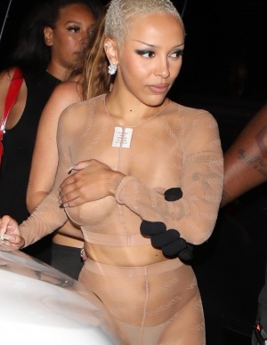 Arrivant dans un ensemble couleur chair, orné de motifs audacieux qui semblent faire un clin d'œil à un QR code sophistiqué, Doja Cat n’a laissé personne indifférent. « Scannez-moi, je suis le ticket d’entrée pour la soirée de l'année! », aurait-elle pu dire, un sourire malicieux aux lèvres.