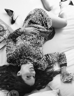 Entre poses langoureuses et paillettes à profusion, elle nous rappelle que même en couverture de GQ Mexico, on peut allier sensualité et comfort food.
