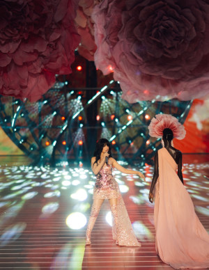 Vêtue d'une robe étincelante qui semble cousue de stardust et d'un éclat d'étoiles, elle a prouvé que chanter et marcher sur un podium de haute couture pouvaient coexister harmonieusement.