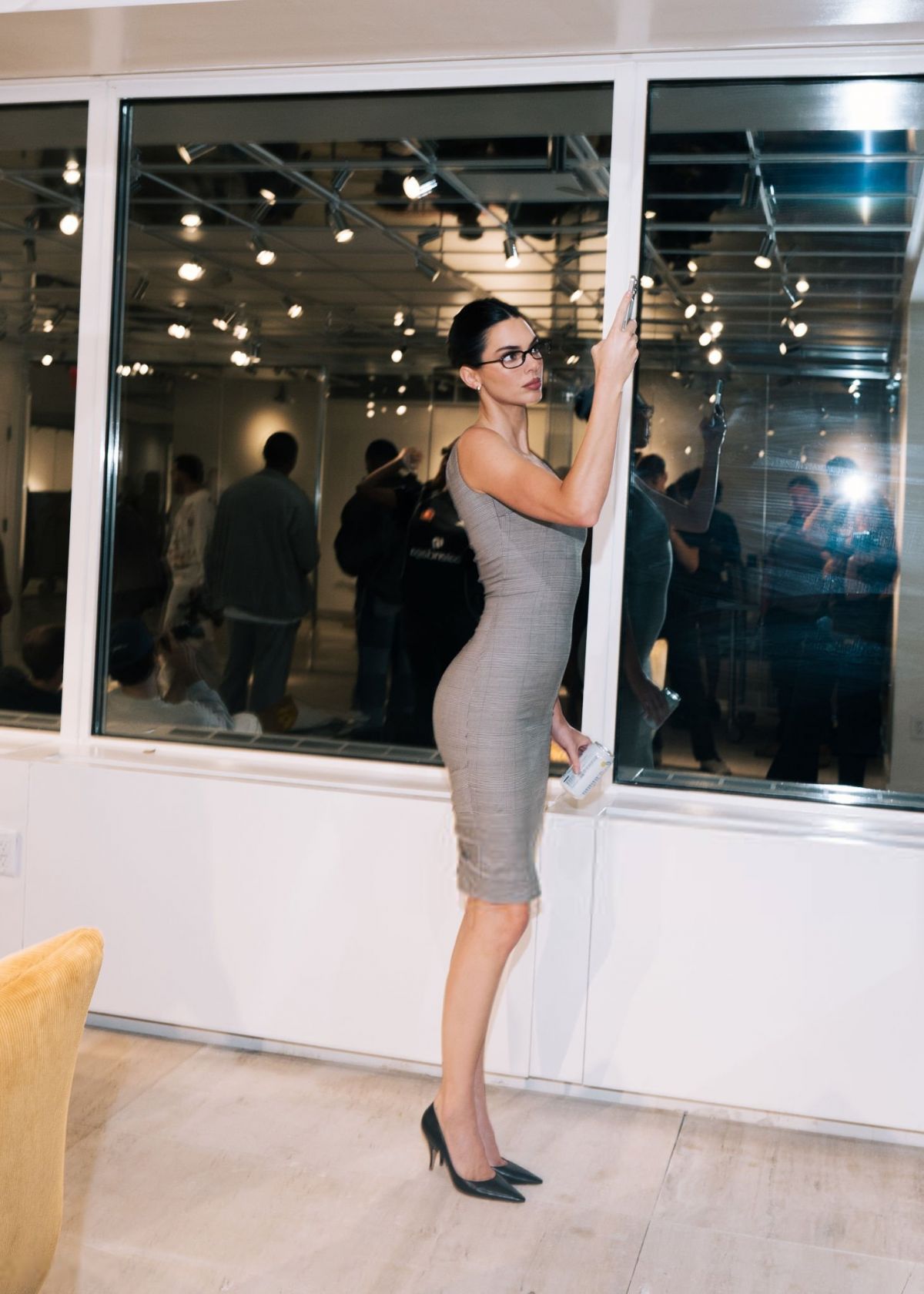 Entre robe crayon stricte et lunettes de bibliothécaire chic, Kendall transforme un lancement branché en séminaire glamour façon “powerpoint mais avec champagne”.