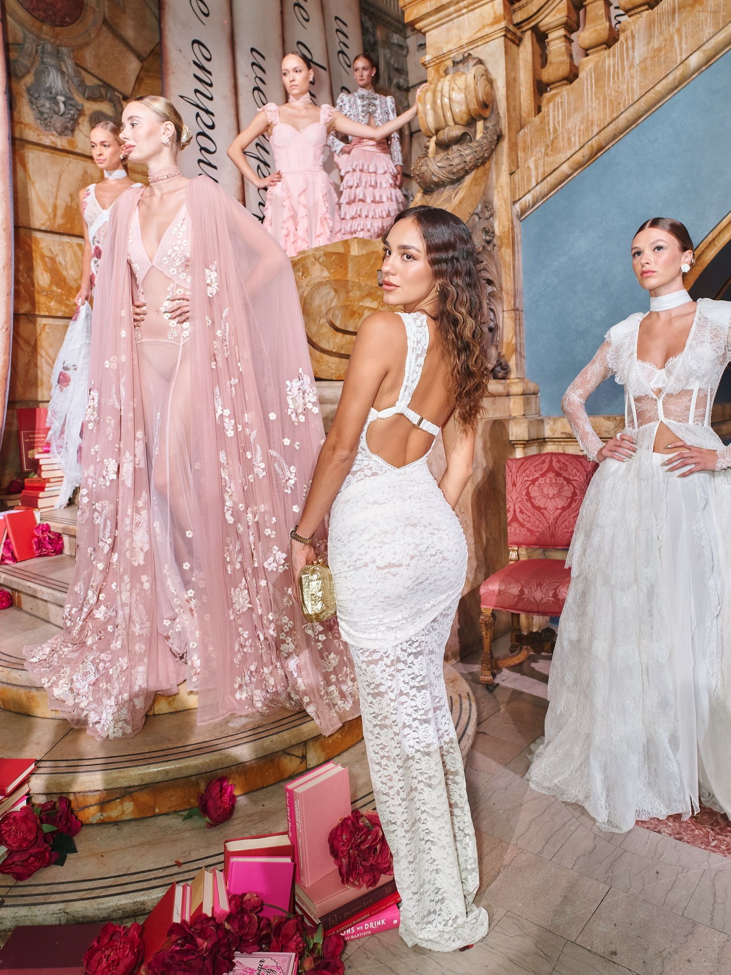 Dans sa robe blanche en dentelle transparente, Luana Barron joue la mariée bohème réinventée, plus prête à séduire l’objectif qu’à lancer un bouquet.