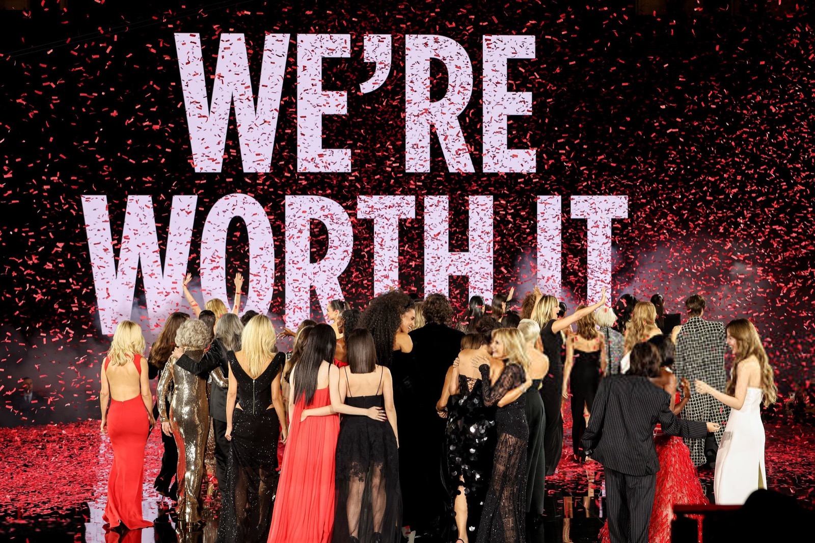 Ce défilé à Paris Fashion Week n’était pas seulement une ode au glamour, mais aussi une performance sarcastique : « Because you’re worth it », surtout si votre valeur se mesure en centimètres de tissu manquant.
