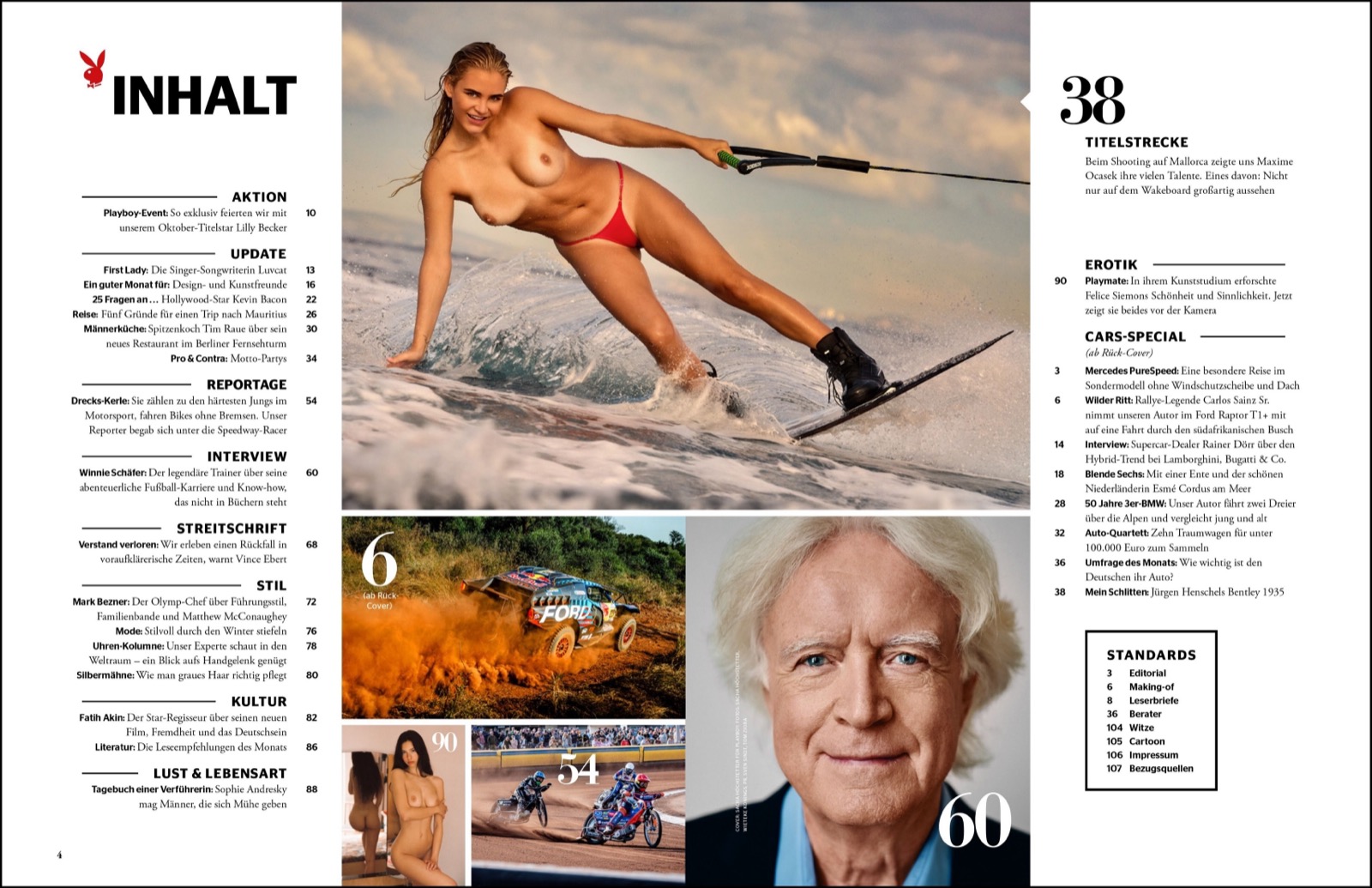 En couverture de Playboy Germany, elle flotte comme une Aphrodite gonflée à bloc, mi-déesse de l’écume, mi-péché capital en string fuchsia.
