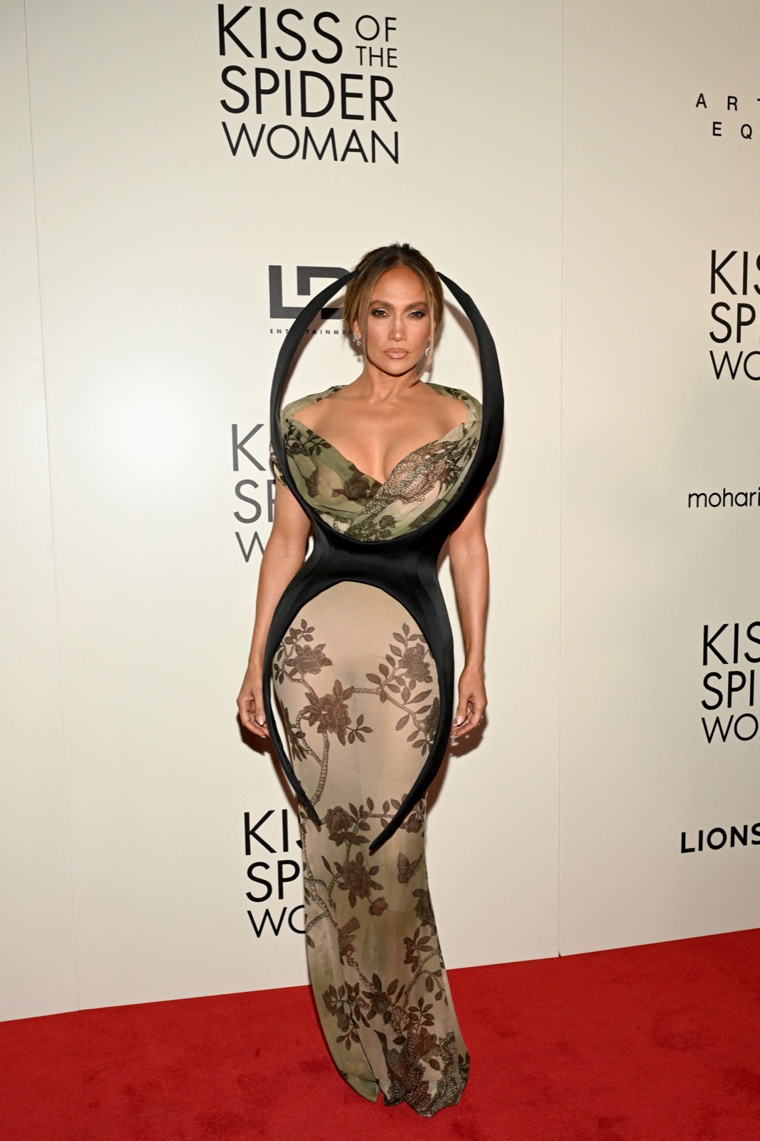 À l’avant-première de Kiss Of The Spider Woman, Jennifer Lopez joue la prédatrice satinée. Sa robe florale épouse chaque souffle, mi-forêt, mi-fantasme.