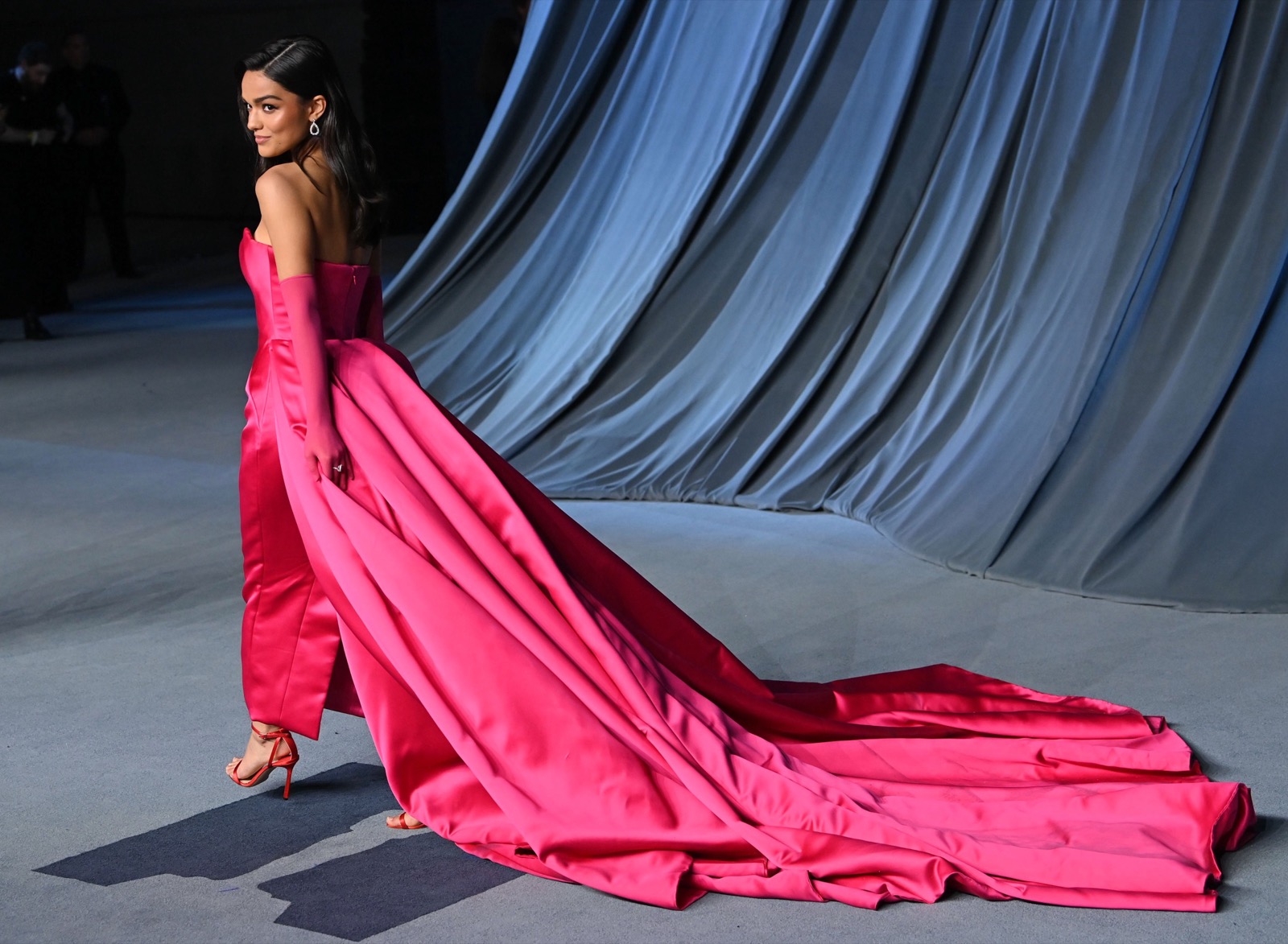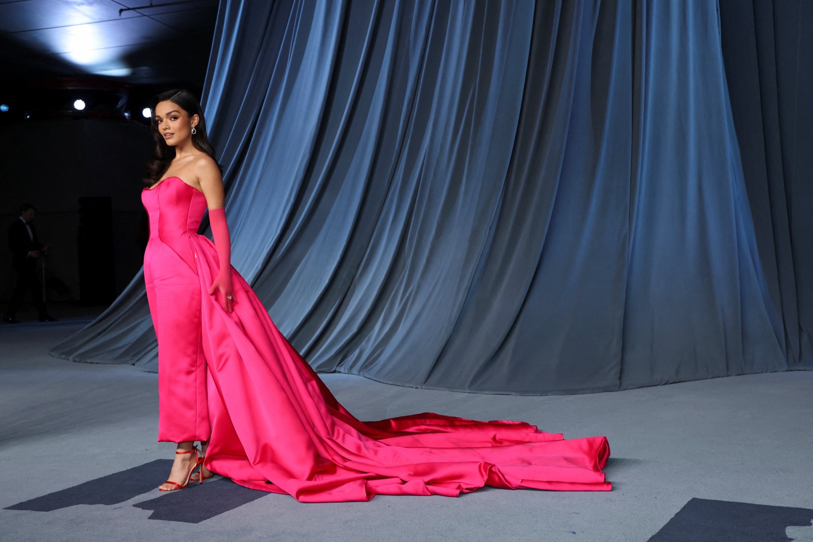 Dans son fourreau fuchsia, Rachel Zegler fait de la vertu une illusion d’optique au 5th Annual Academy Museum Gala. Le bustier épouse ses courbes comme un secret bien gardé, et la traîne, interminable, glisse derrière elle comme la preuve matérielle de son propre culte.