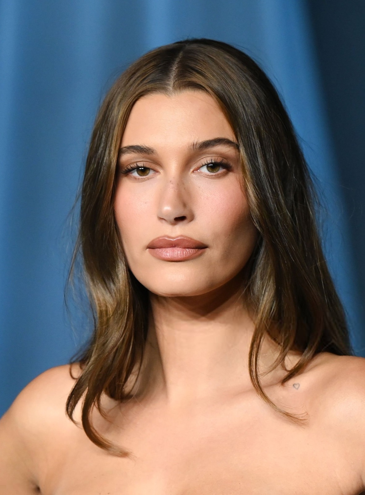 Au 5th Annual Academy Museum Gala, Hailey Bieber apparaît en corset chocolat et transparence caramel, silhouette taillée au scalpel de la tentation. Chaque pli de satin ondule comme un soupir refoulé sous la lumière mondaine.