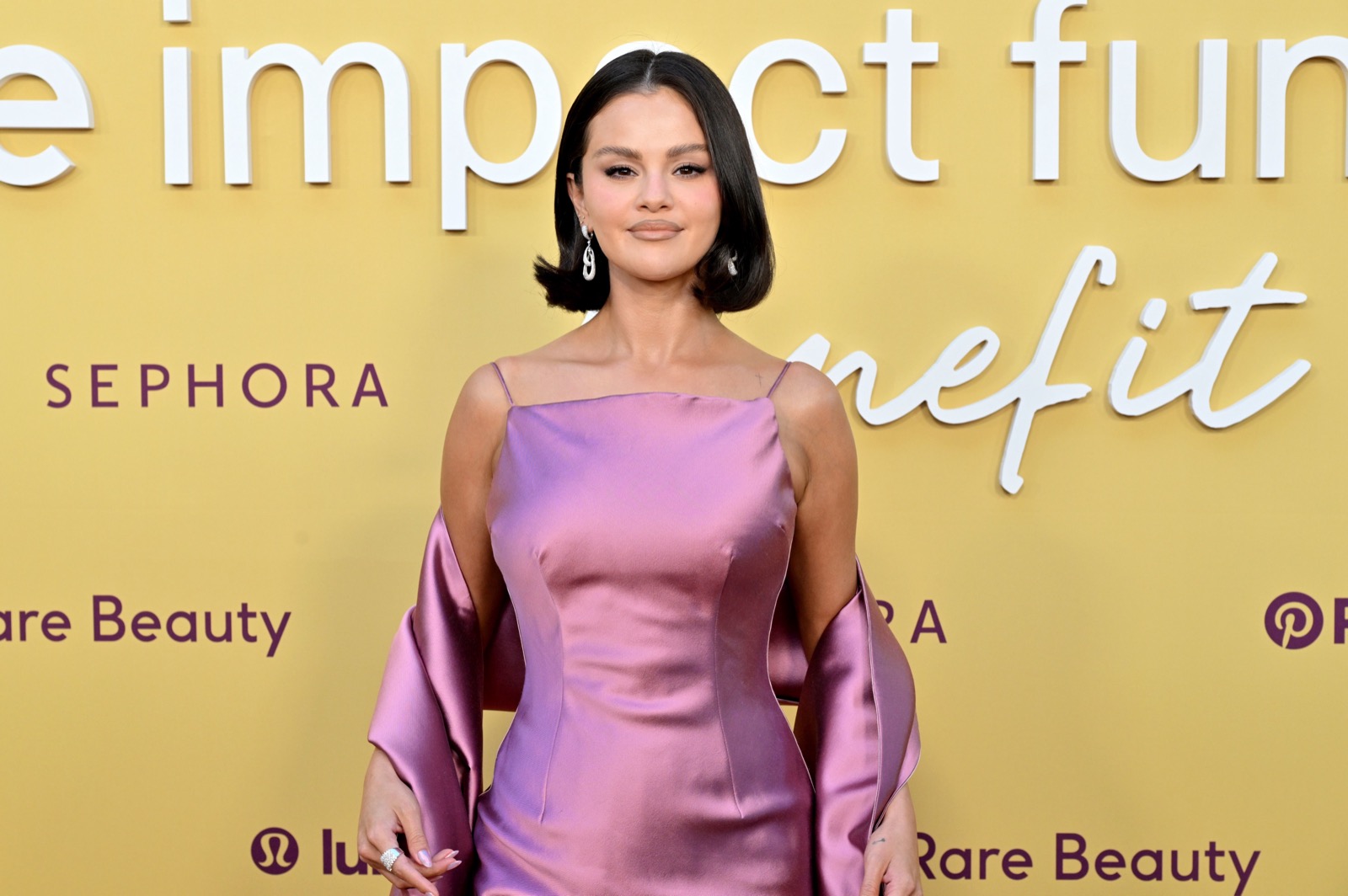 En robe lilas moulée comme un secret trop doux, Selena prouve qu’on peut briller pour une cause et pécher pour la soie.