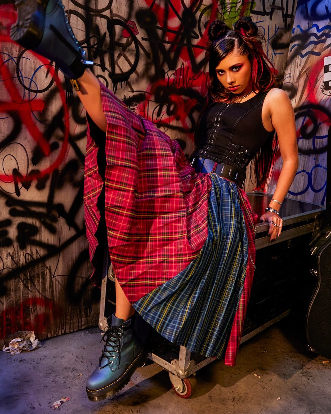 On retrouve même l’énergie insolente qui l’a portée dans Dancing With The Stars, transformant ce shooting en chorégraphie punk parfaitement contrôlée.