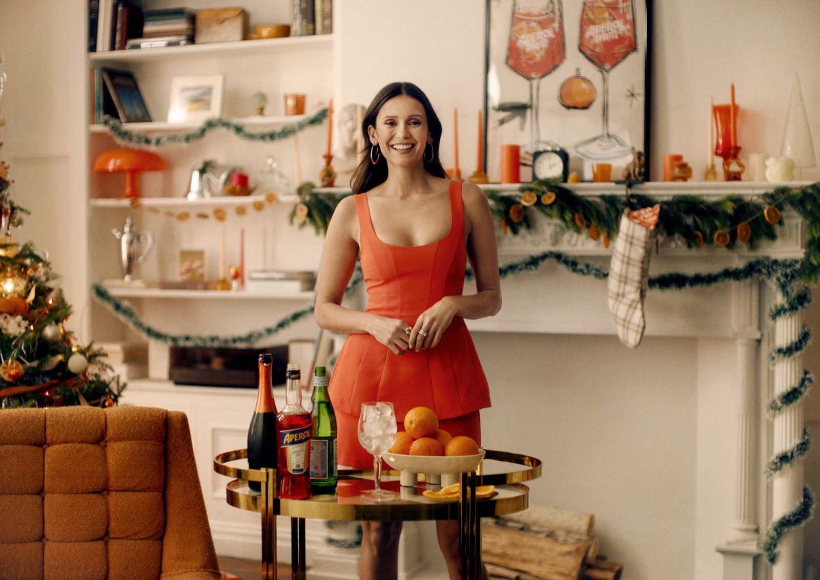- 23/11/2025 - Nina Dobrev en campagne Aperolidays dans un salon plus orange qu’un sunset