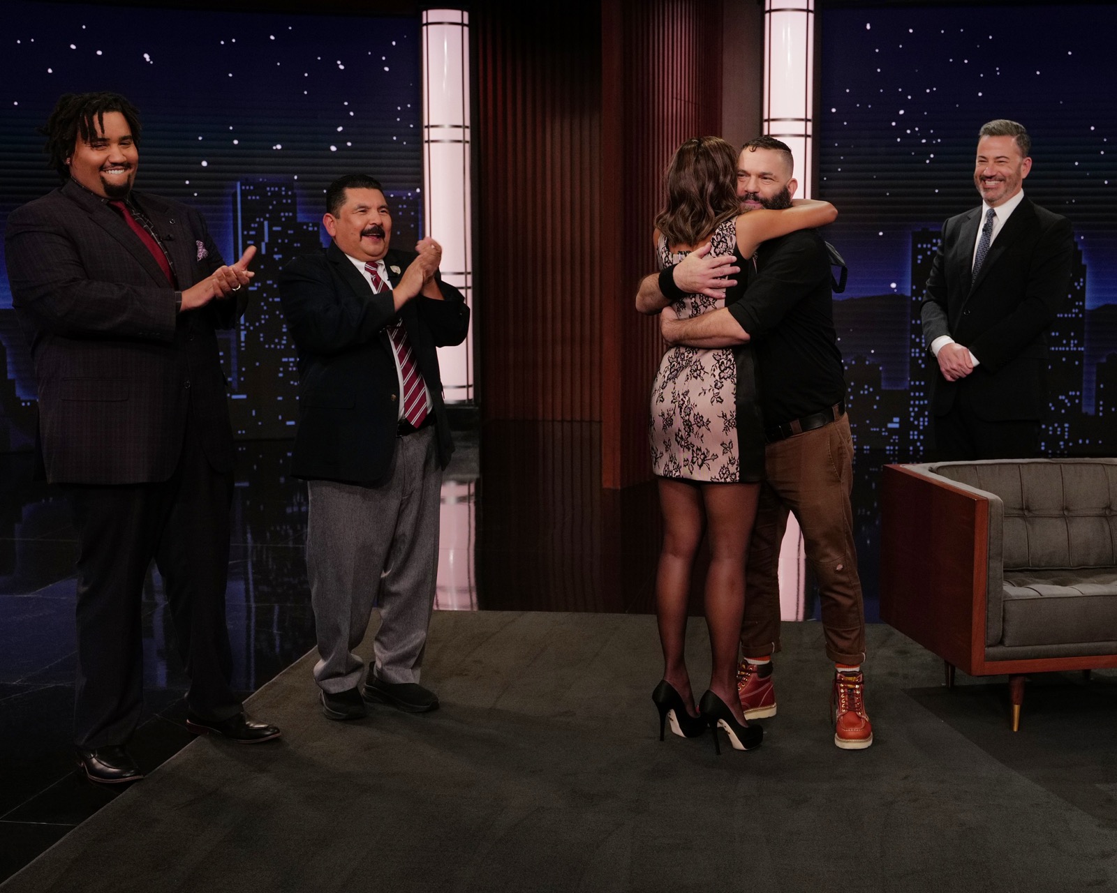 Kerry Washington arrive en mode élégance stratosphérique, robe dentelle qui fait semblant d’être sage mais qui pose clairement plus que tout le décor. Même le bureau de Jimmy Kimmel paraît vérifier sa posture.