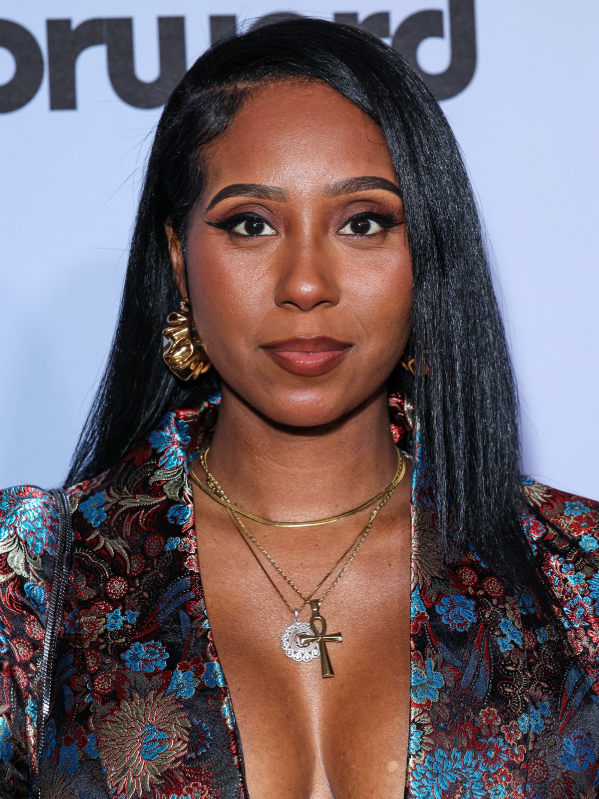Au gala Give Her FlowHERS de Femme It Forward à Los Angeles, Khat Rabbani pose dans un tailleur brocart qui semble avoir volé la vedette au décor. Le décolleté assumé dessine une ligne dramatique parfaitement maîtrisée, presque chorégraphiée.