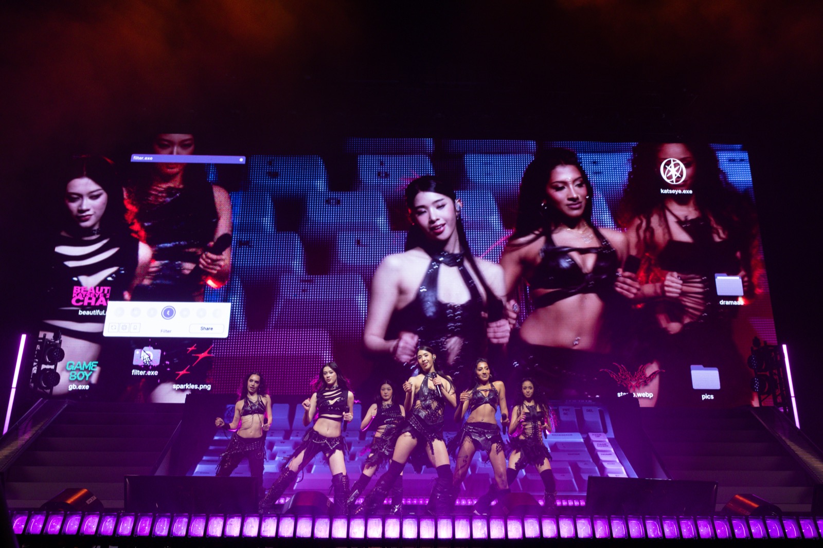 Sur le Beautiful Chaos Tour, les corps claquent, les cheveux fouettent l’air et les micros deviennent des armes de séduction massive. Chaque pose est une provocation, chaque pas un défi lancé au public.