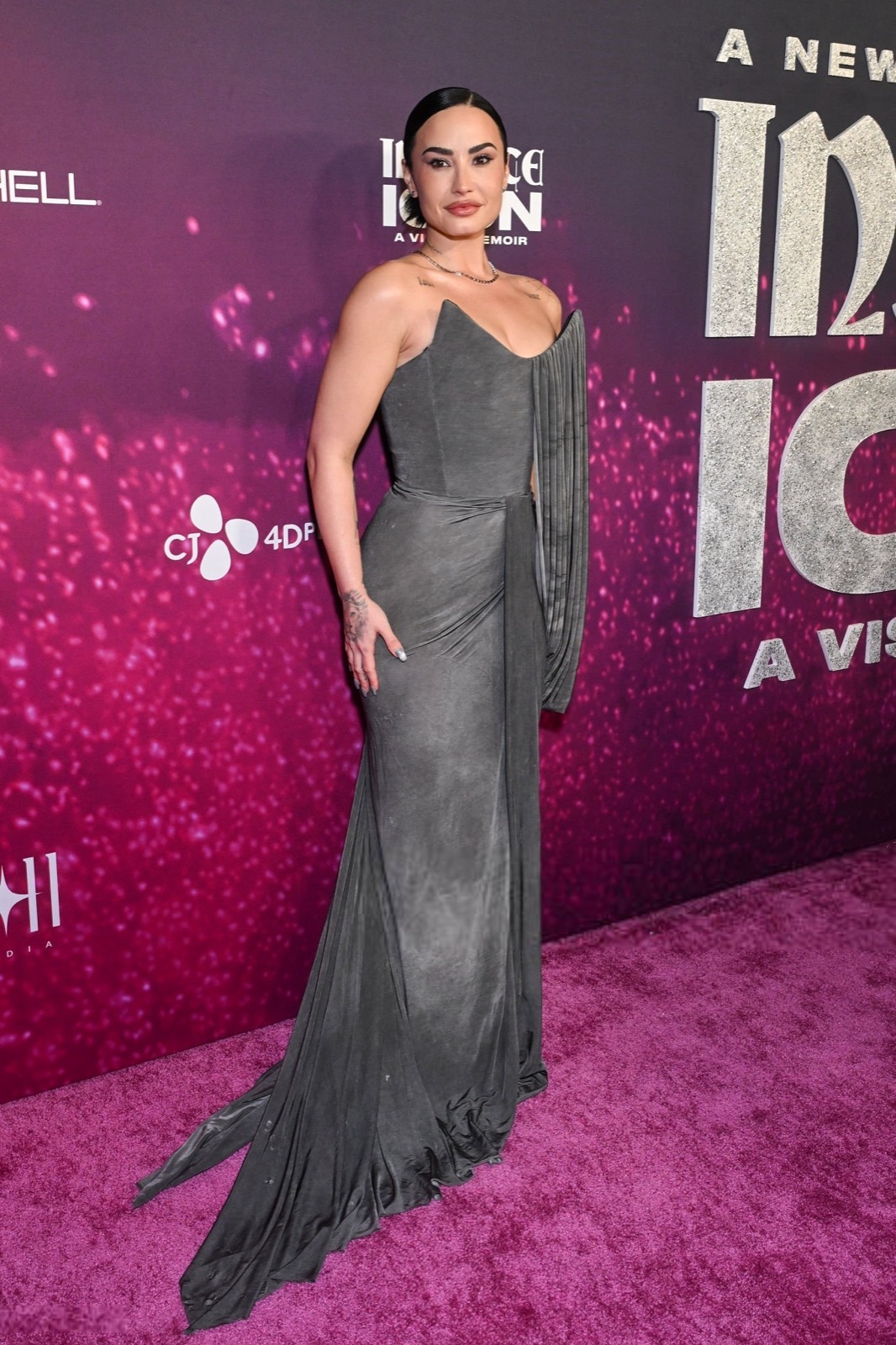 Robe plombée, bustier serré, regard qui coupe, Demi Lovato avance comme une mission secrète, coincée entre drapé sérieux et envie évidente de respirer enfin.