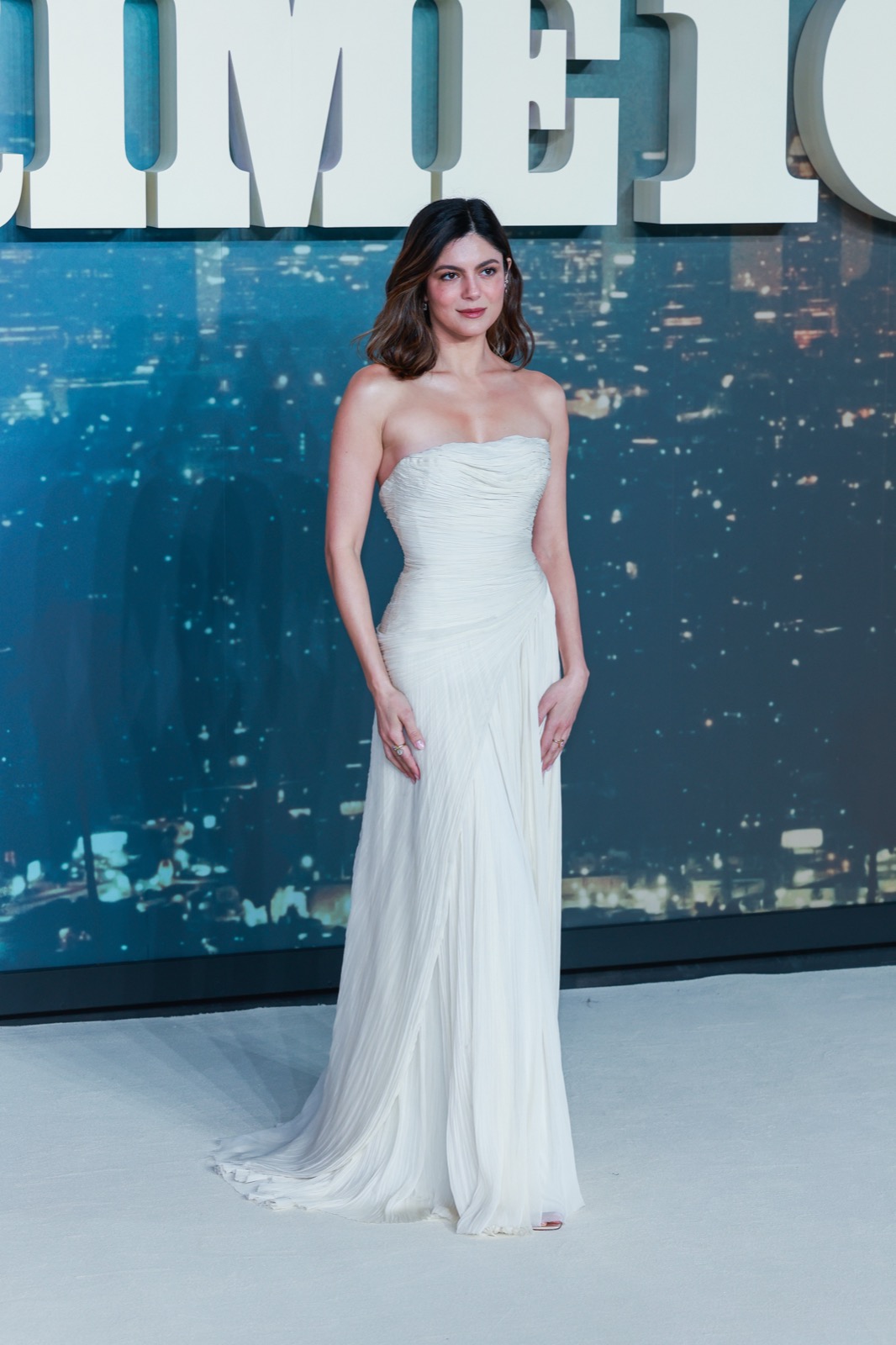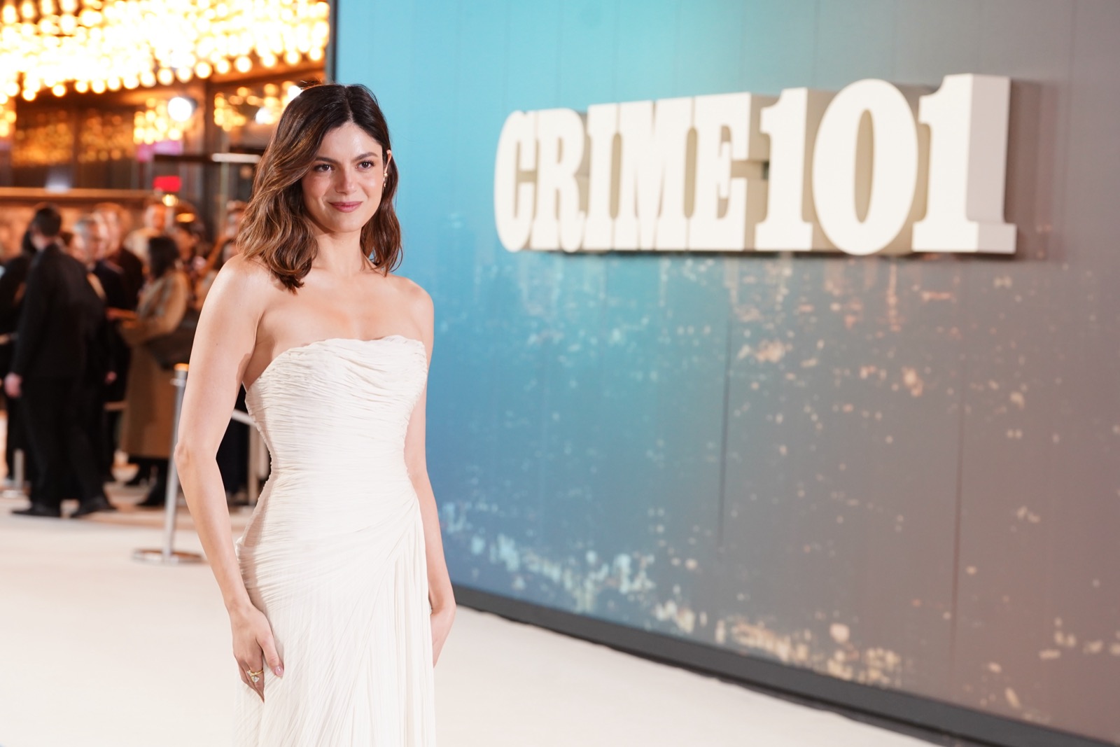 À Londres pour présenter CRIME 101, film qu’elle défend sur tapis bleu, elle soigne l’image avant la sortie. Après Top Gun: Maverick, Monica Barbaro connaît l’action ; ici, elle maîtrise surtout les flashs.