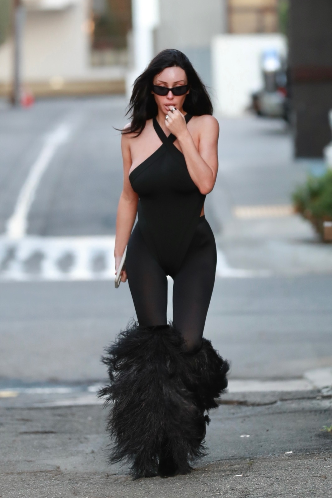 Bianca Censori en balade à Los Angeles, bottes en roue libre