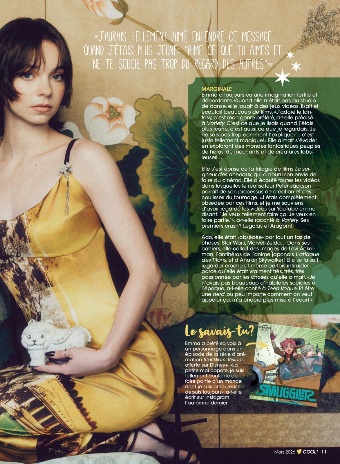 - 12/02/2026 - Emma Myers en couverture de Cool Canada, regard sage, robe piquante