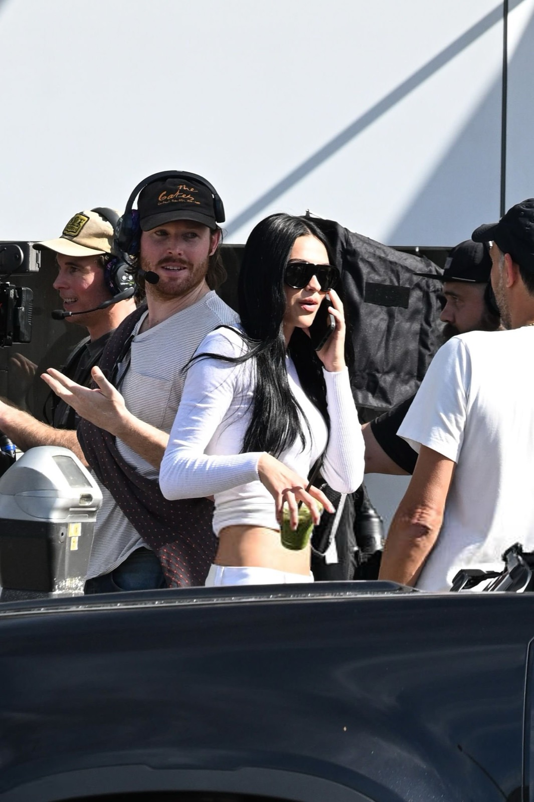 Repérée à West Hollywood pour un shooting street-style. La mannequin téléphone, coordonne l’équipe. Clin d’œil: fille de reality-TV, devenue visage fashion qui fait travailler les trottoirs.