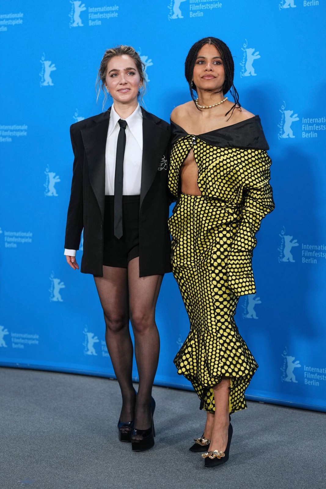 Entre collants complices et talons agressifs, les deux actrices assurent la promo. La Berlinale célèbre le cinéma mondial ; elles démontrent surtout que la gravité fonctionne parfaitement sur les regards environnants.