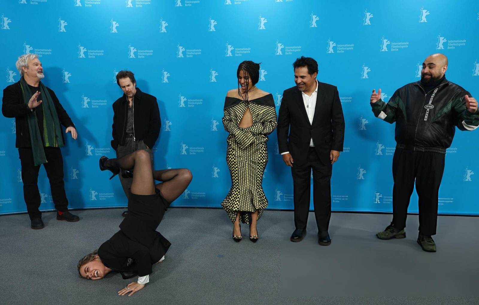 Au photocall du festival à Berlin, la veste devient micro-jupe et la robe à pois prend des initiatives. Officiellement on parle de films, officieusement le tapis rouge teste son adhérence face aux poses pédagogiques et dangereusement inclinées.