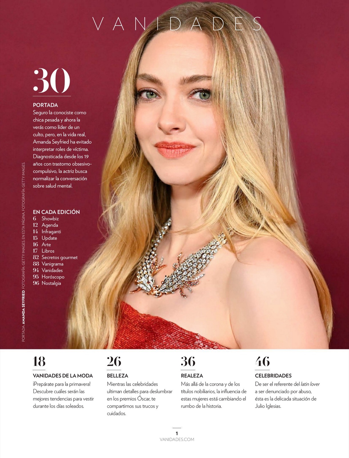 - 05/03/2026 - Amanda Seyfried pose pour Vanidades Mexico, collier royal et calme incendiaire.