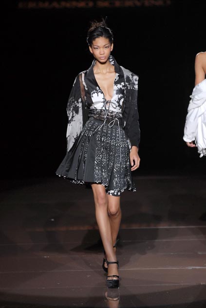 Sur les podiums, elle aligne les maisons : Dolce & Gabbana (2007), Givenchy (2008), Fendi (2009), Versace (2014) — un calendrier précis qui la voit passer de la silhouette romantique au tailoring graphique sans perdre son tranchant. En éditorial, elle multiplie couvertures et séries pour Vogue (2007) et Teen Vogue (2009), tandis que les campagnes beauty et joaillerie confirment un visage immédiatement reconnaissable. Entre défilés spectaculaires et images iconiques, Chanel Iman impose un mix de grâce et de puissance : épaules conquérantes, lignes nettes, présence qui “tient” l’image. Une trajectoire datée, cohérente et résolument glamour, qui fait d’elle l’un des repères de sa génération sur la scène mode internationale.