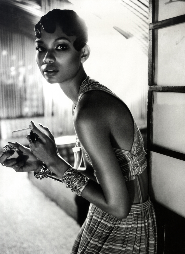 Chanel Iman est un mannequin américain qui grandit à Los Angeles et s’impose très tôt par une allure féline et un sens du défilé chirurgical. Finaliste du Ford Supermodel of the World (2006), elle enchaîne les éditos et signe une entrée remarquée dans Vogue (2007), avant de devenir l’un des visages les plus demandés des fashion weeks. Entre studios californiens et catwalks européens, elle affine une signature précise : port altier, démarche rapide, regard qui capte l’objectif, et une polyvalence rare entre haute couture et campagnes grand public.