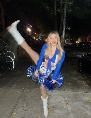 Brooks Nader en tenue translucide incendie la nuit new-yorkaise