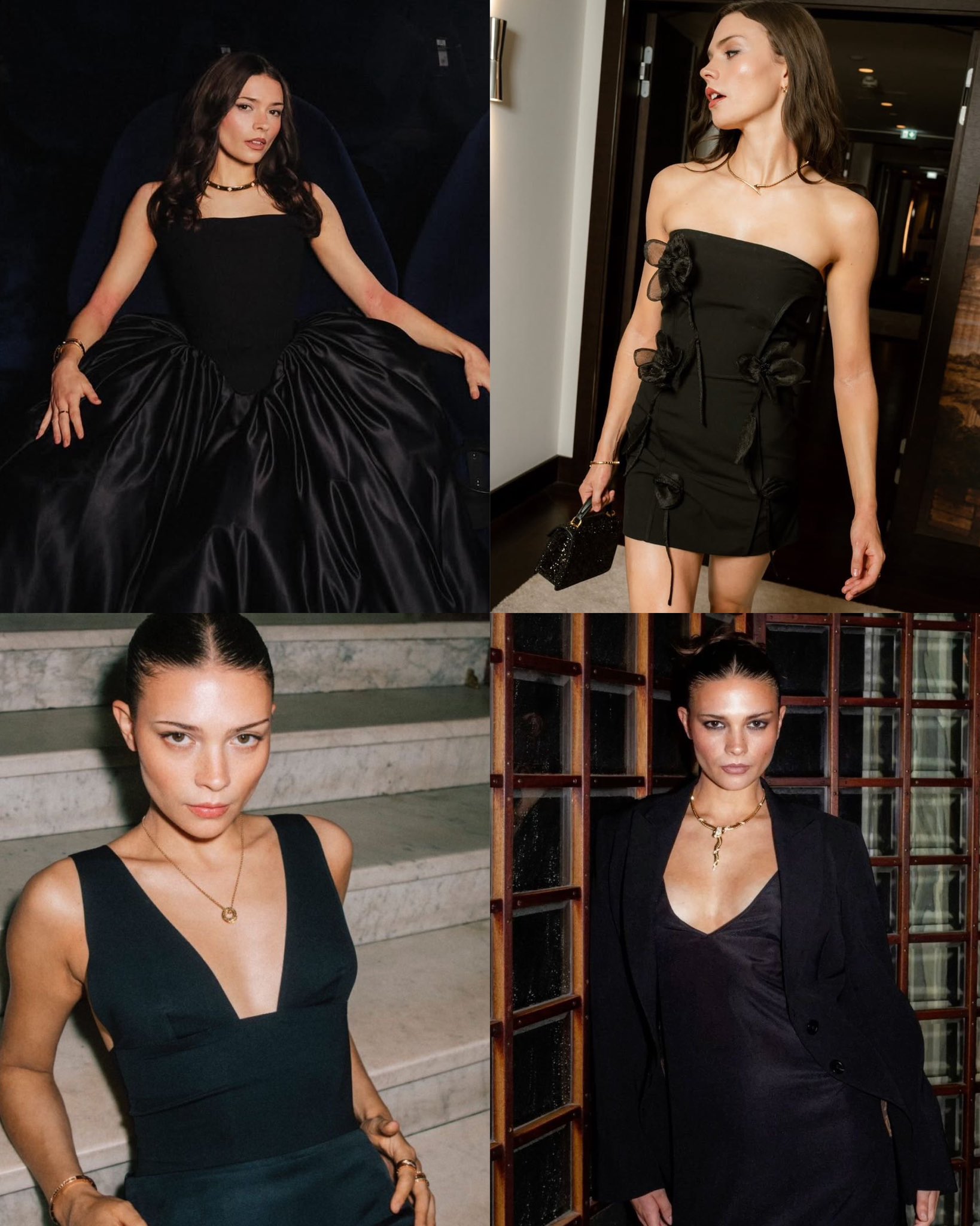 (28 photos)Robe noire, dos nu, sourire qui sait exactement quand la caméra cligne.