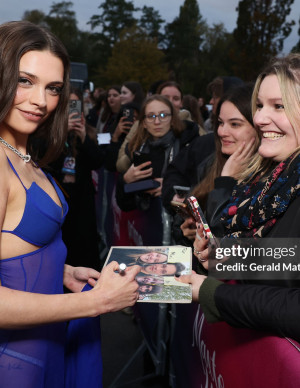 (3 photos)Robe noire ultra raide, frange au millimètre : Rei Ami regarde les flashs comme s’ils lui devaient de l’argent.