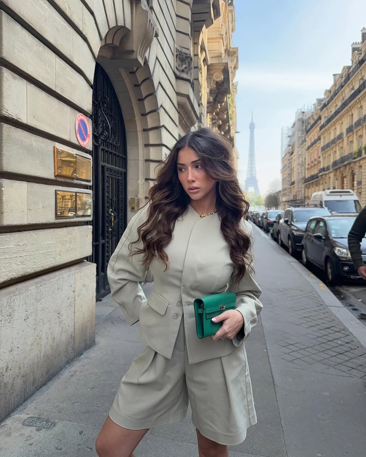 (7 photos)Fauteuil mou, regard affûté, robes qui glissent : elle pose comme si le temps devait s’excuser d’exister.