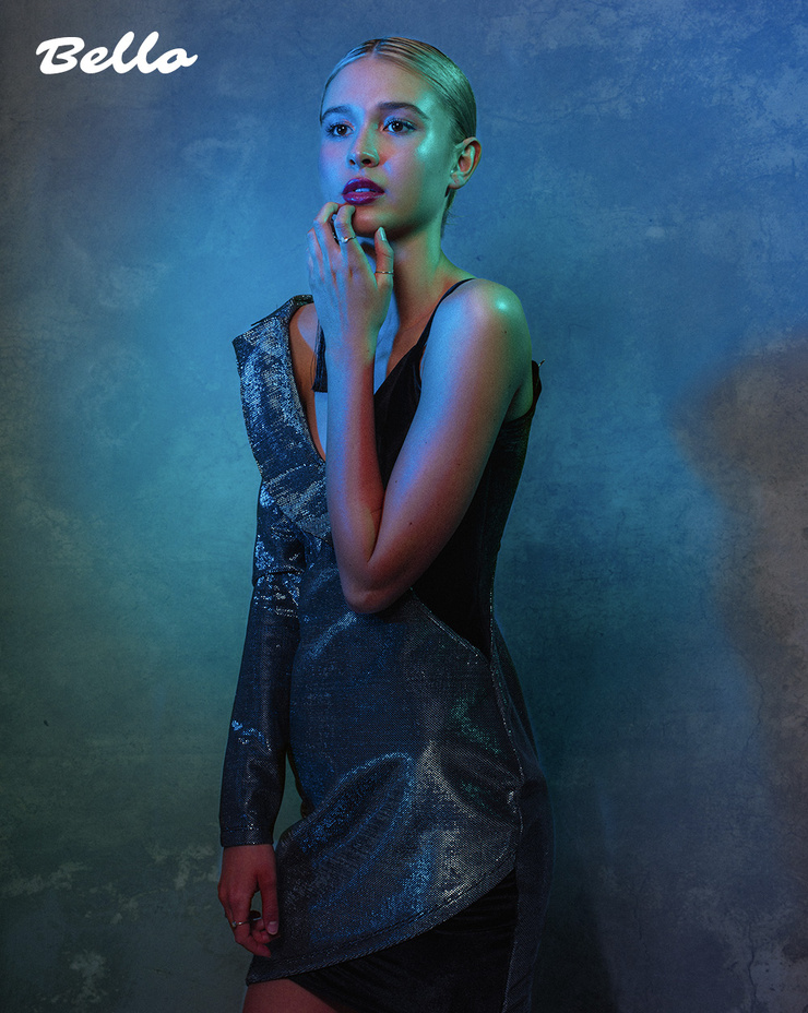 Isabel May au Scream 7 x TikTok, mini-robe calme couteau panique