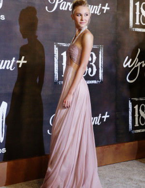 La bascule médiatique intervient avec 1883 (2021), fresque western dont elle incarne Elsa Dutton et assure la narration. Diffusée en France en 2022, la série lui offre un rôle central et une exposition internationale. Elle y partage l’écran avec Faith Hill, et s’impose comme visage dramatique crédible. Elle reprend ensuite la voix d’Elsa dans 1923 (2022), où figurent Helen Mirren et Julia Schlaepfer, confirmant son ancrage dans cet univers télévisuel ambitieux.