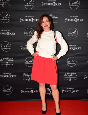 Ashley Park en robe rouge à la première parisienne de Emily in Paris saison 5
