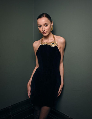 La reconnaissance mondiale arrive avec La Chronique des Bridgerton (2020–), romance de haute société tournée entre Bath et Londres, où son incarnation de Daphne installe un visage signature du period drama moderne; l’aventure se prolonge avec Simone Ashley et Hannah Dodd, confirmant l’ampleur de l’ensemble féminin. Au cinéma, elle mène The Colour Room (2021), portrait d’artiste tourné au Royaume-Uni, puis s’aventure dans le drame financier Fair Play (2023), présenté à Sundance, où sa présence tendue et élégante affirme une maturité de premier plan. Entre élégance classique et acuité contemporaine, Phoebe Dynevor compose une filmographie cohérente, précise et résolument magnétique.