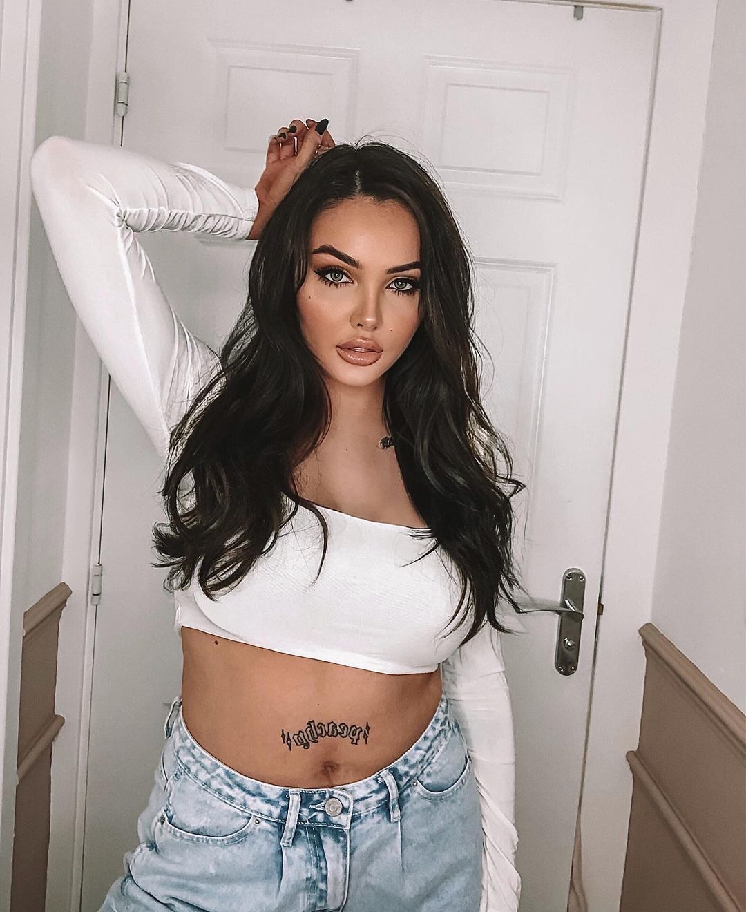 (38 photos)Ventre exposé, cuir serré, elle marche calme, mains dans les poches, comme si tout ce corps savait exactement pourquoi les regards suivent.