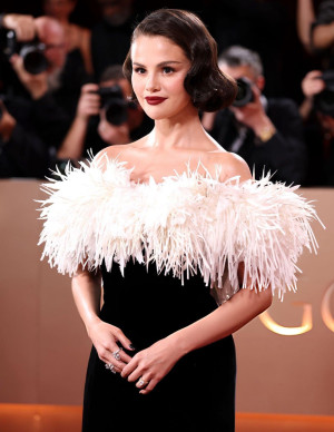 Selena Gomez aux Golden Globe Awards, plumes disciplinées