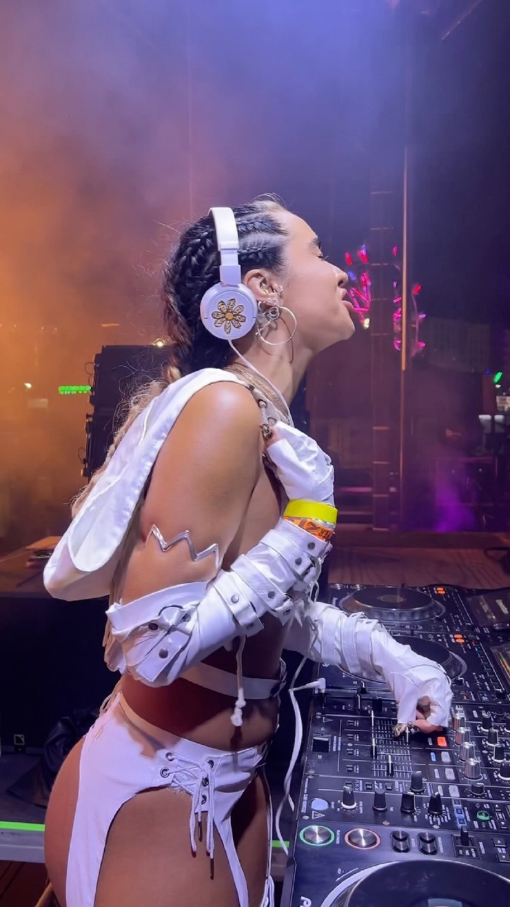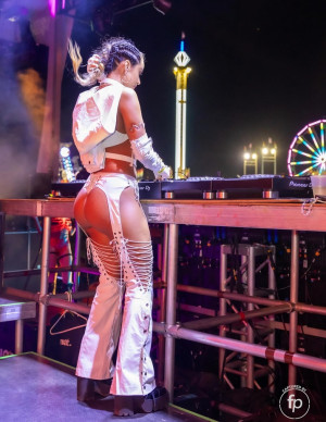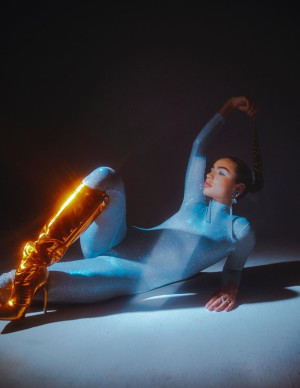 (85 photos)Sous son corset noir, la tentation devient géométrie variable. Et la magie, pure stratégie de décollement visuel.