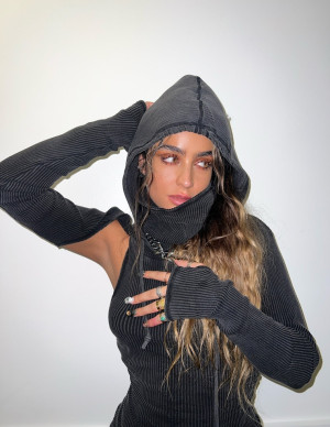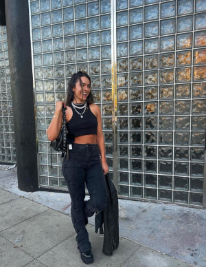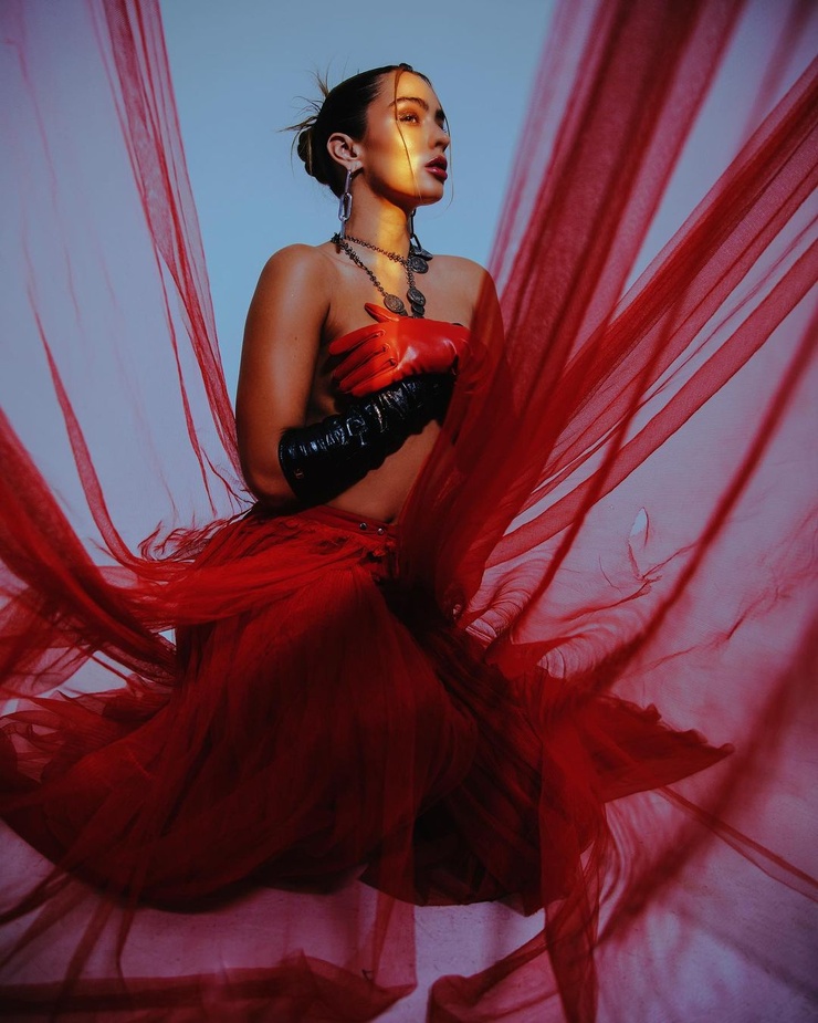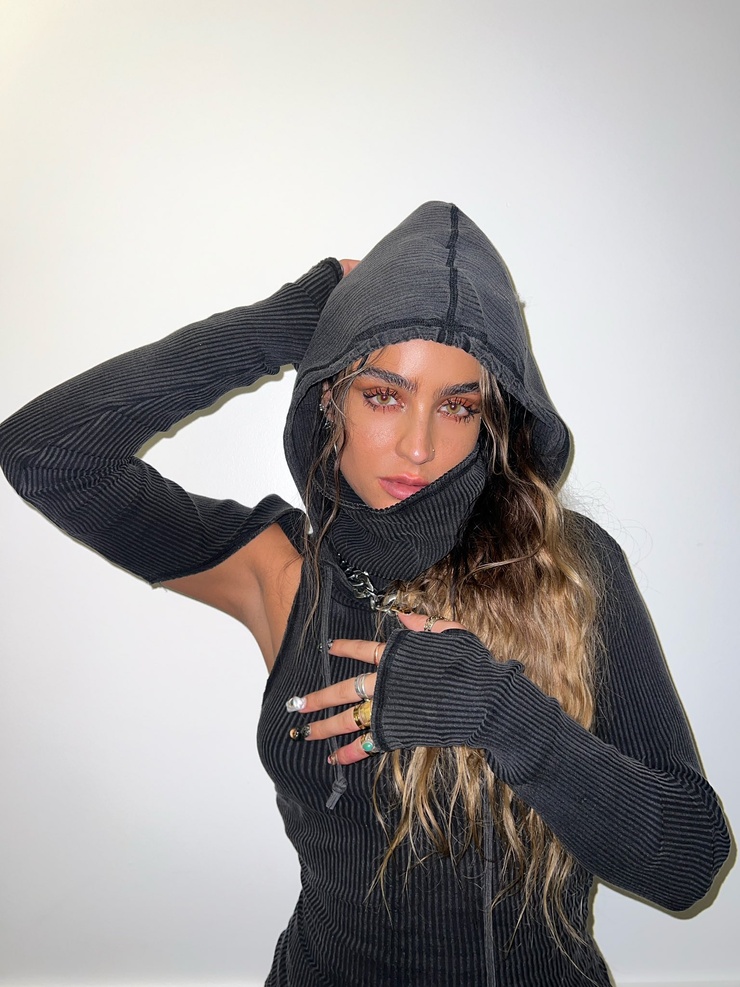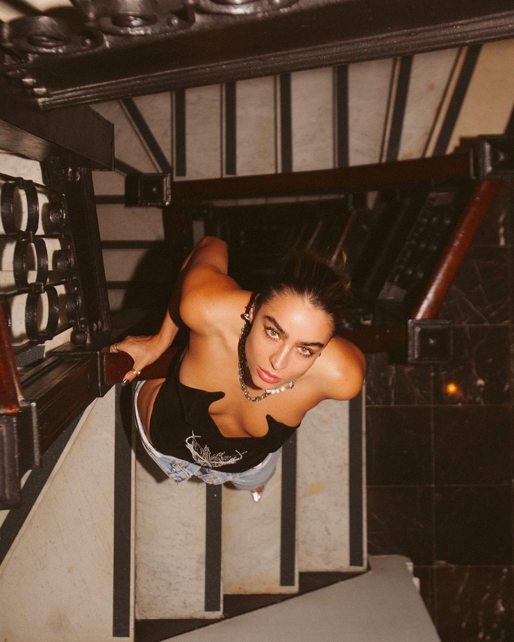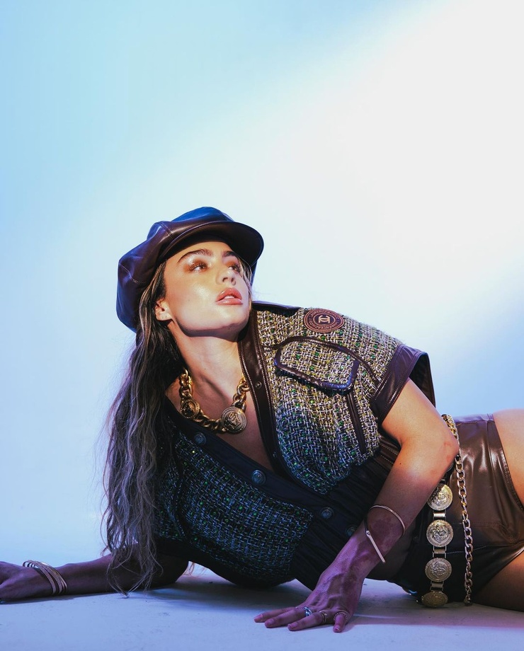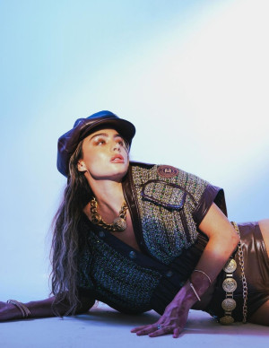 (8 photos)Une séance où Sadie transforme chaque décor improbable en podium fauve, mêlant audace street, humour insolent et esthétique pop déglinguée.