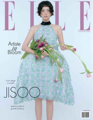Jisoo en couverture Elle Singapore, bouquet fatigué et regard lundi matin