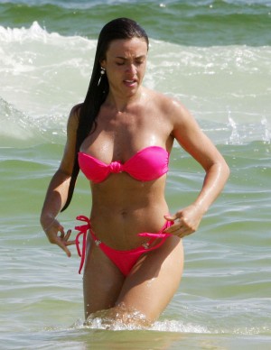 Nicole Bahls, Miss Reef 2007 devenue la copine du footballeur Ronaldo, expose ses formes dans son string bikini sur une plage de Rio…