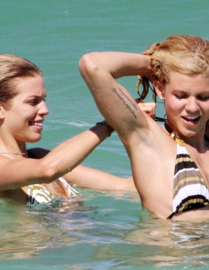 AnnaLynne s’offre des vacances avec sa soeur à Miami et pour parfaire son bronzage, elle se met topless sur le ventre seulement quand on doit se rhabiller c’est pas évident et évidement un de ces tout petits seins s’est échappé.