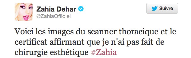 Zahia Dehar a publié plusieurs documents sur Twitter pour prouver qu’elle a des vrais seins.