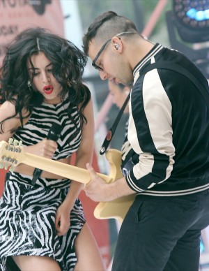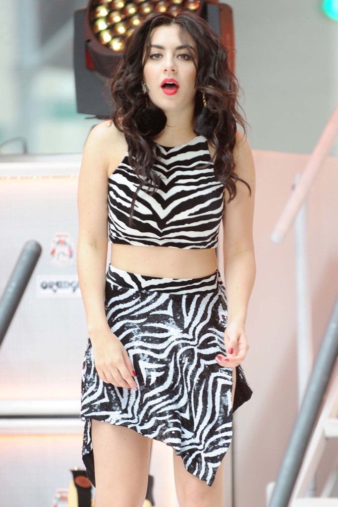 Mini-jupe et haut cache-cœur zèbres, voilà comment la chanteuse Charli XCX était vêtue lors de son show au Today Show Concert Series.
