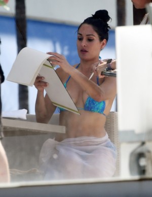 Nikki Bella en sexy bikini bleu pour le tournage de Total Divas à Miami