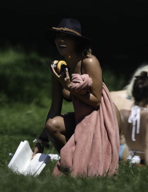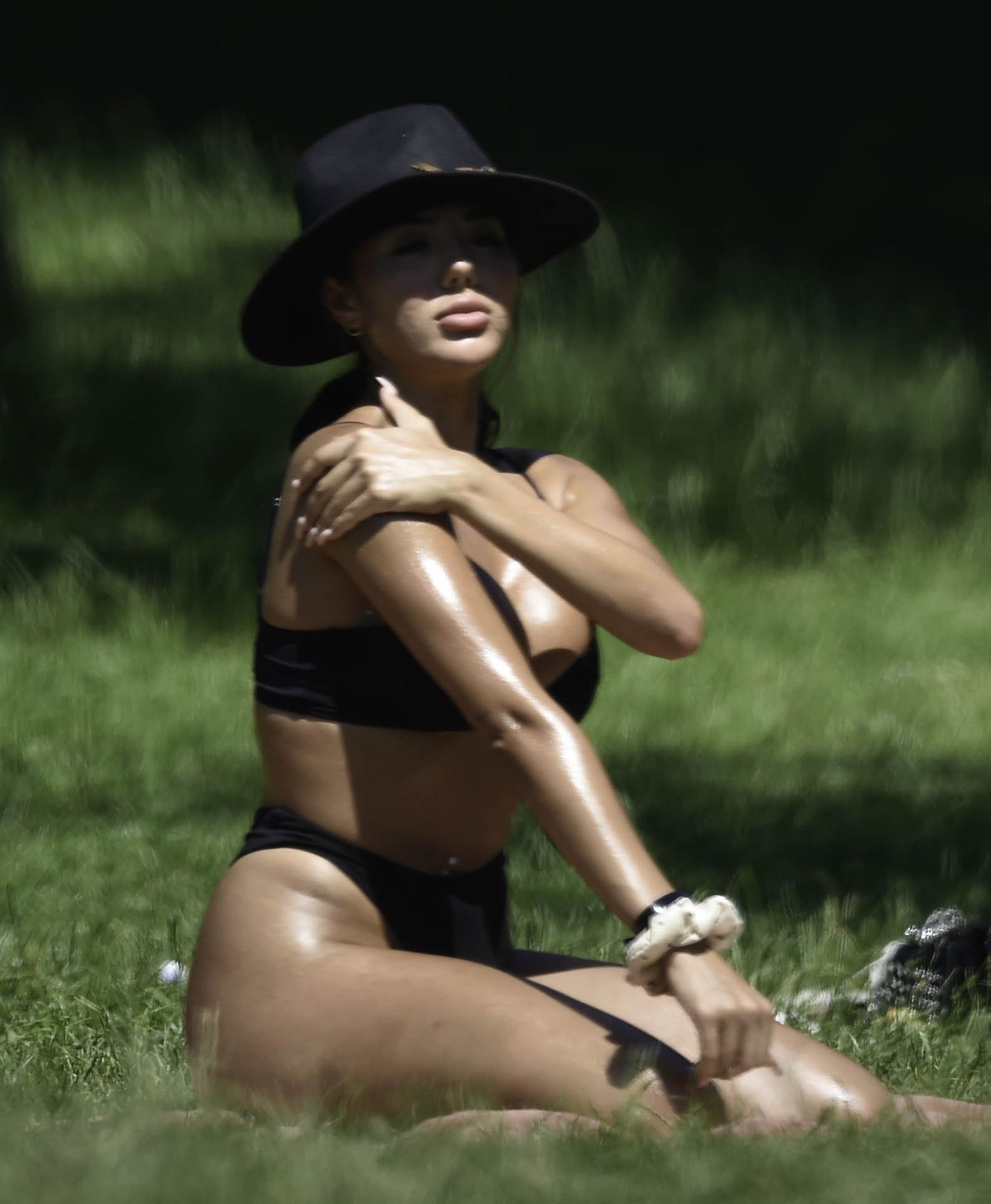 Arianna Ajtar en séance de bronzage dans un parc à Manchester