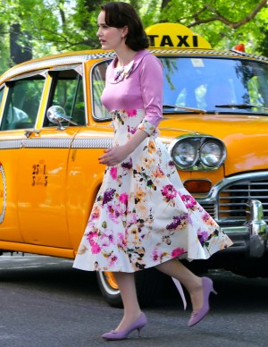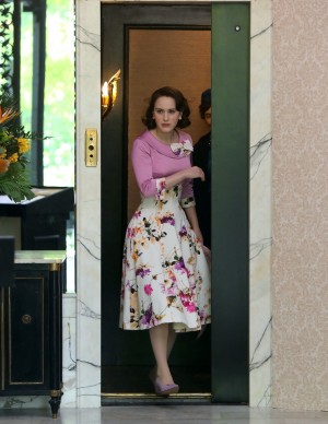 Rachel Brosnahan sur le tournage de Mme Maisel, femme fabuleuse