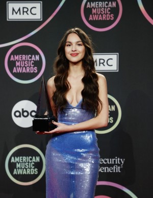 Olivia Rodrigo sexy décolleté aux American Music Awards 2021 à Los Angeles