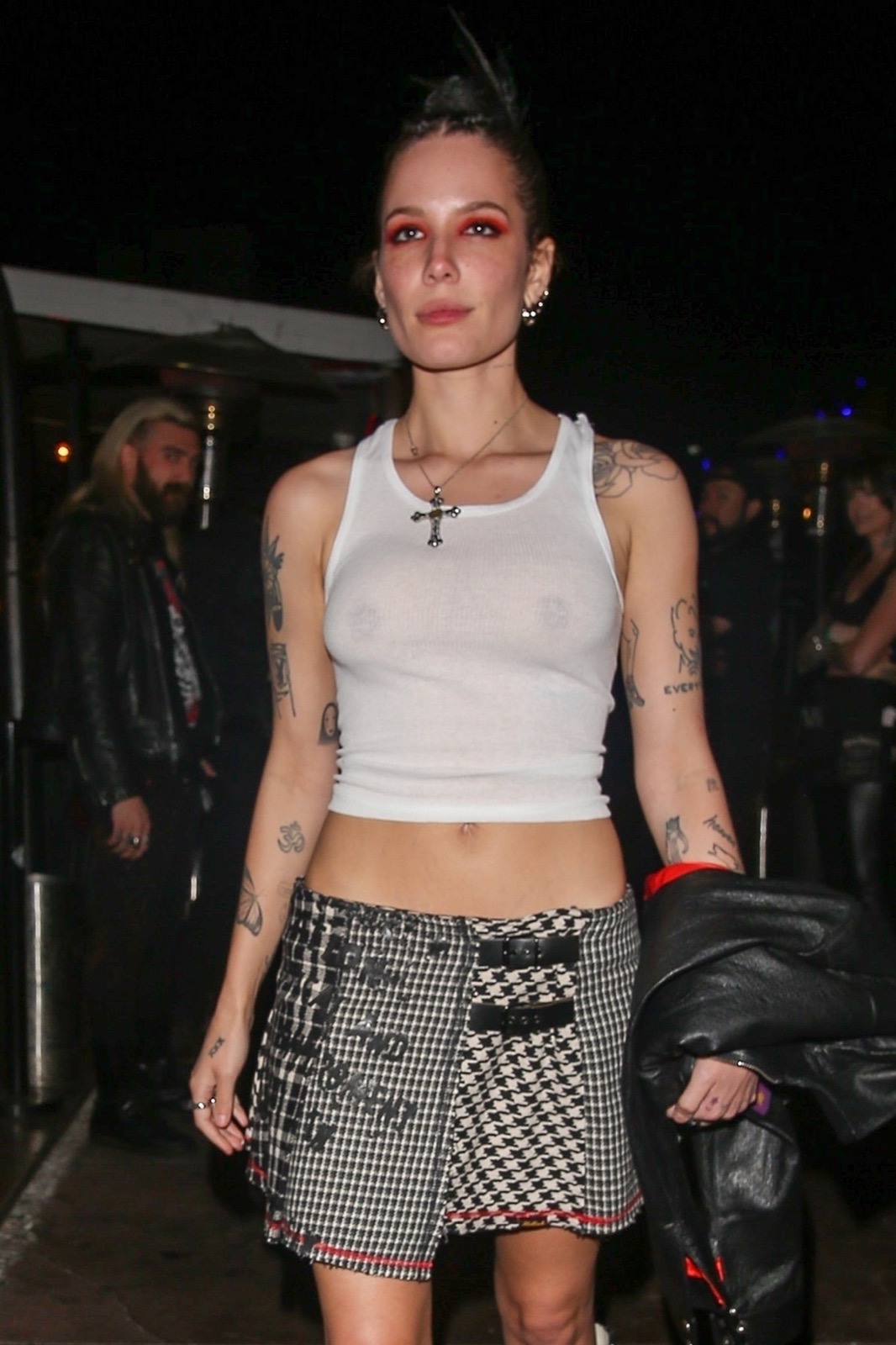 La chanteuse Halsey (haut transparent) en soirée à Hollywood