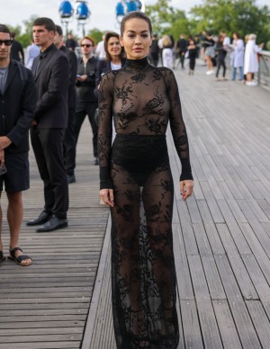 La tenue transparente mettait en valeur ses courbes et ajoutait une touche de sensualité à son look. Rita Ora, avec sa présence magnétique, a su captiver l'attention de tous les regards présents. Son charme indéniable et son talent musical ont fait d'elle une véritable icône. Sa participation au défilé Azzedine Alaïa était une preuve supplémentaire de son statut dans l'industrie de la mode.