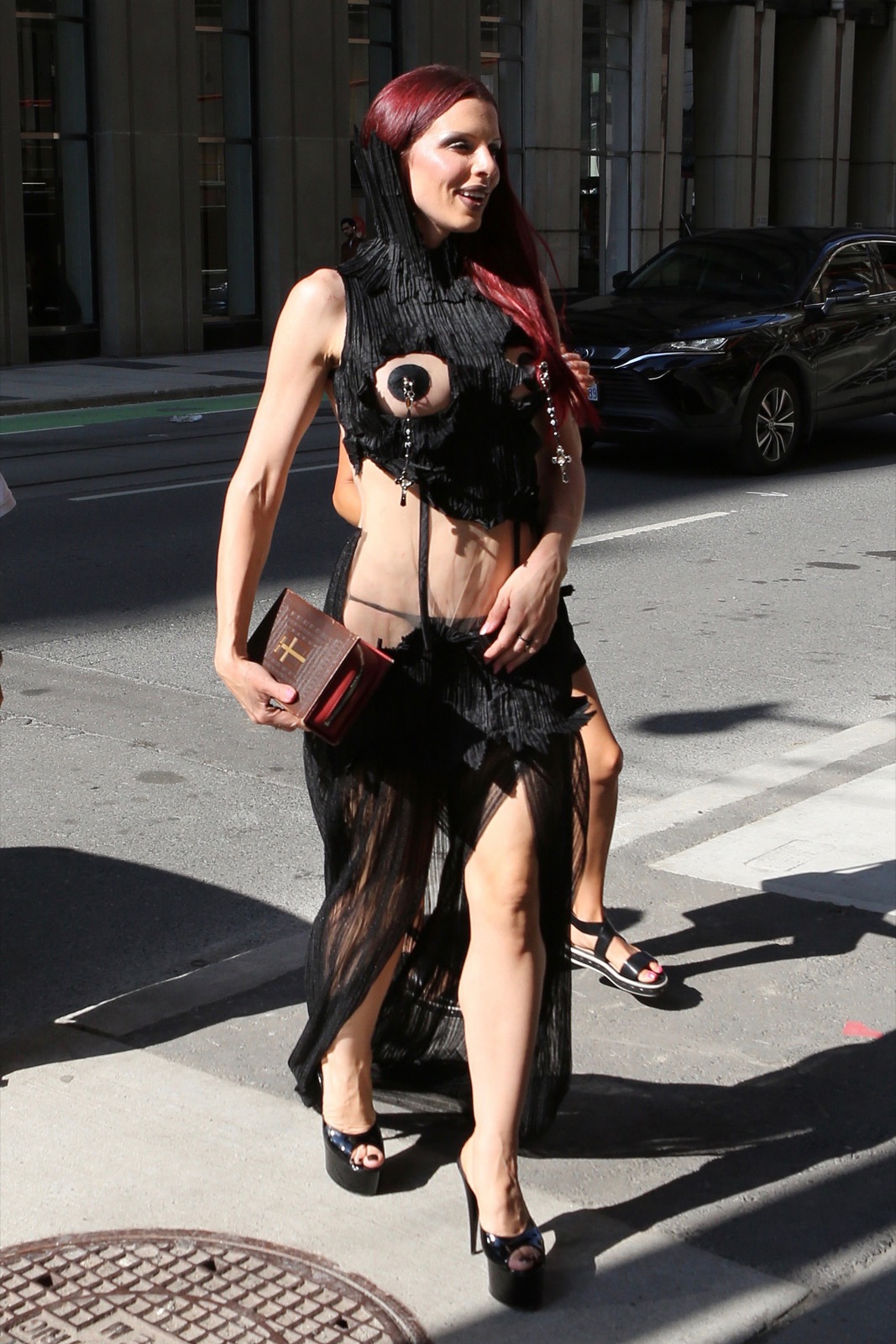 Les attaches sur les seins ajoutaient une touche de sensualité et de rébellion à son look. Julia rayonnait d'une confiance éclatante, affirmant sa présence avec audace et créativité.
